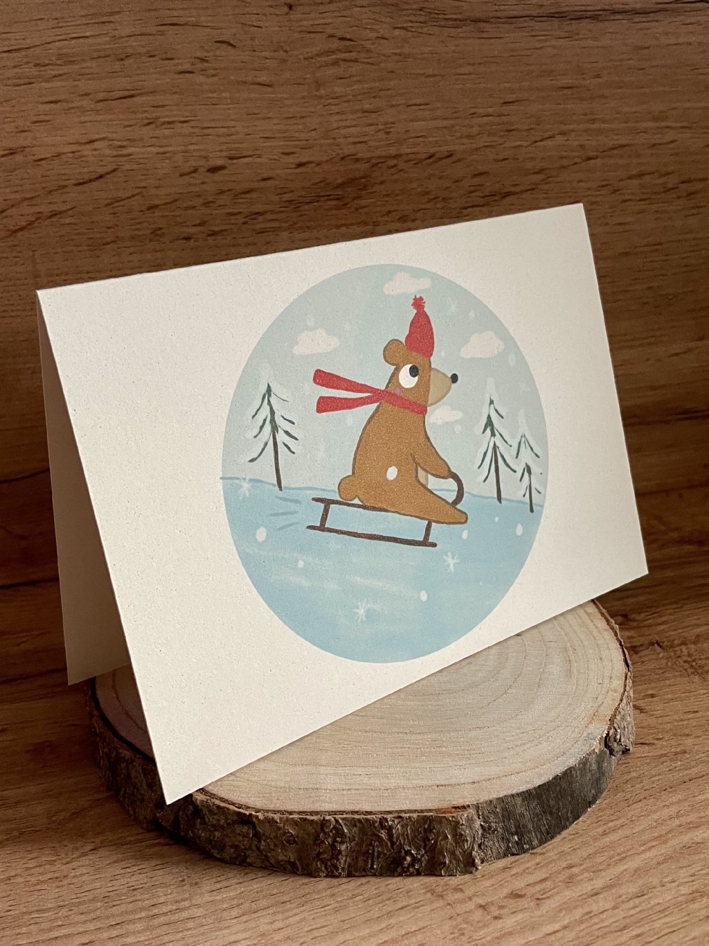 Přáníčko Sáňkující Méďa