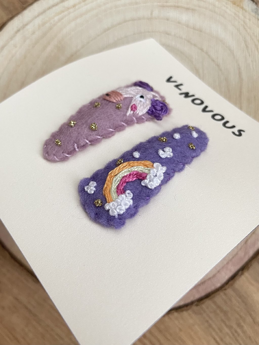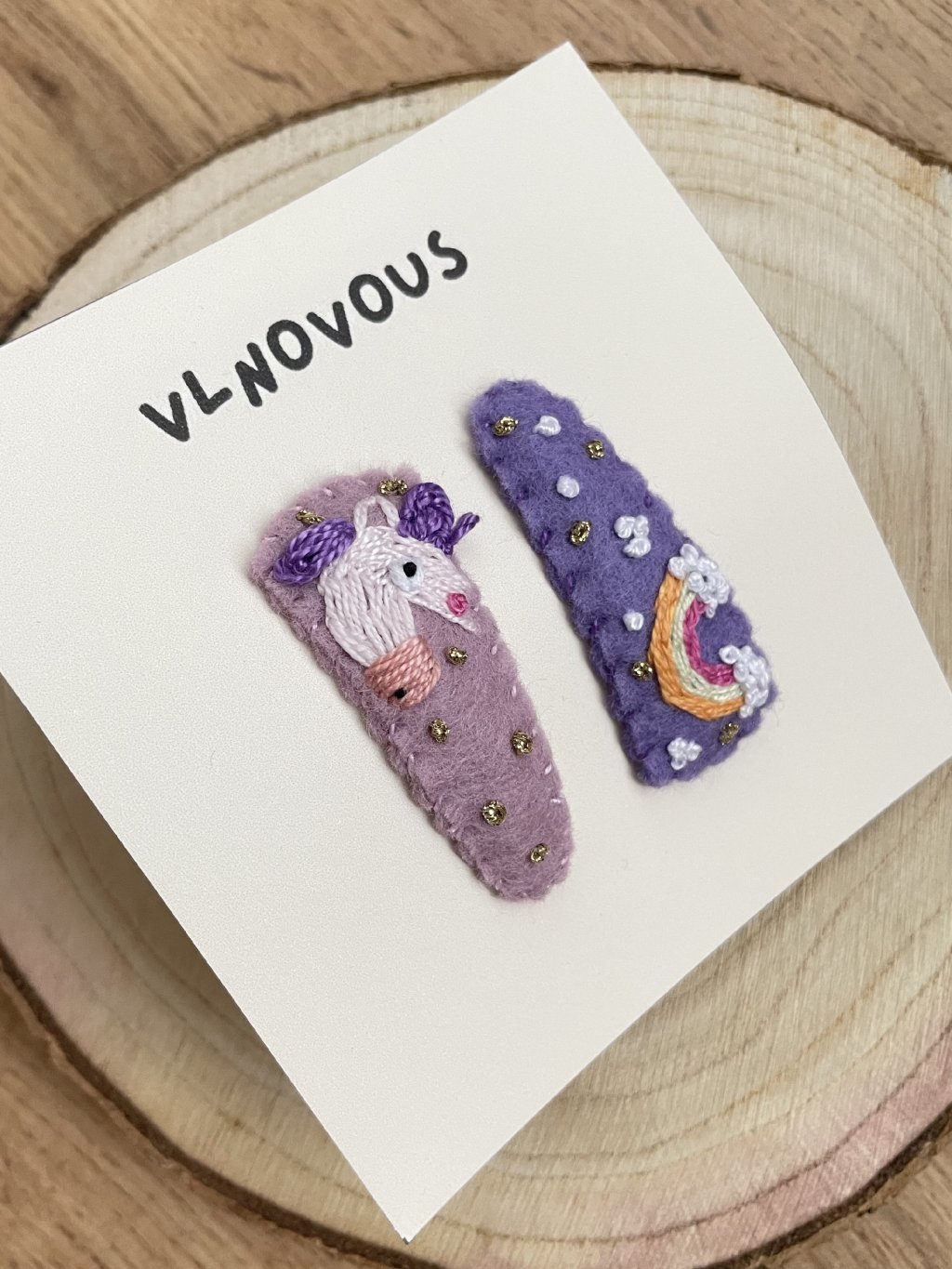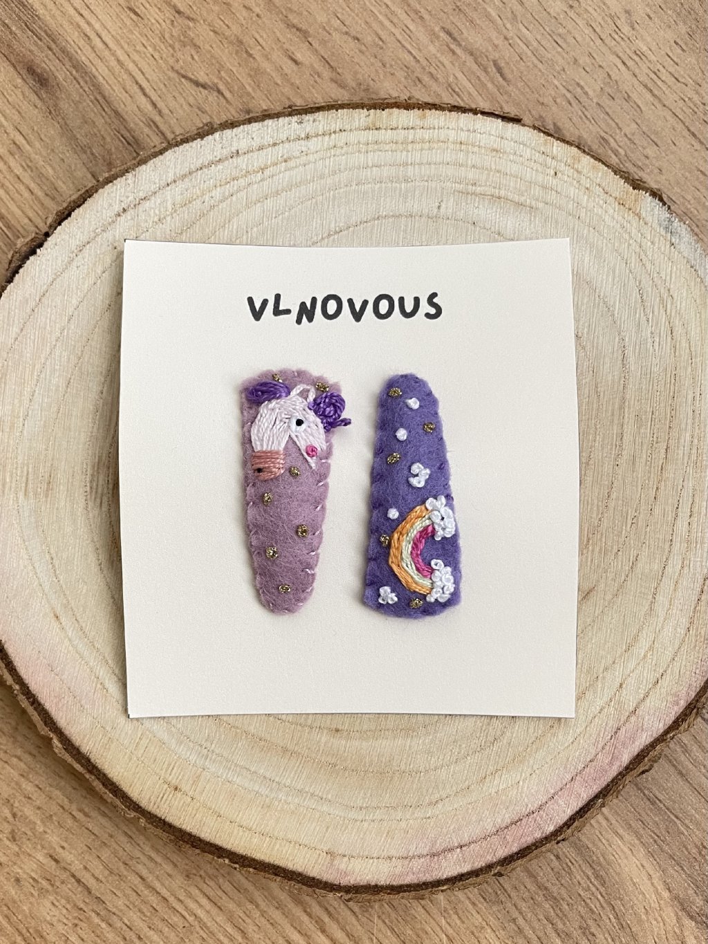 Ručně vyrobené sponky z plsti s autorským motivem.